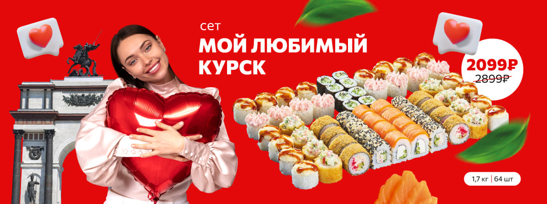Сет Мой Любимый Курск, 64 родных кусочков всего за 2099 рублей по акции:Наслаждаемся любимым сетом по акции.